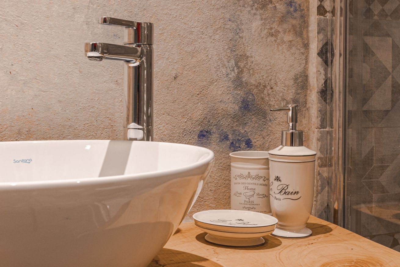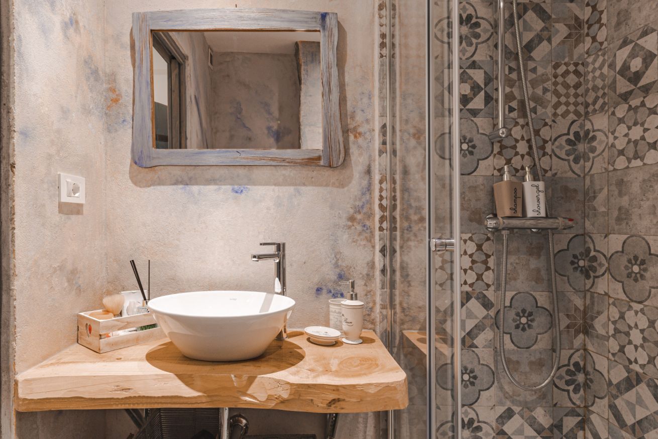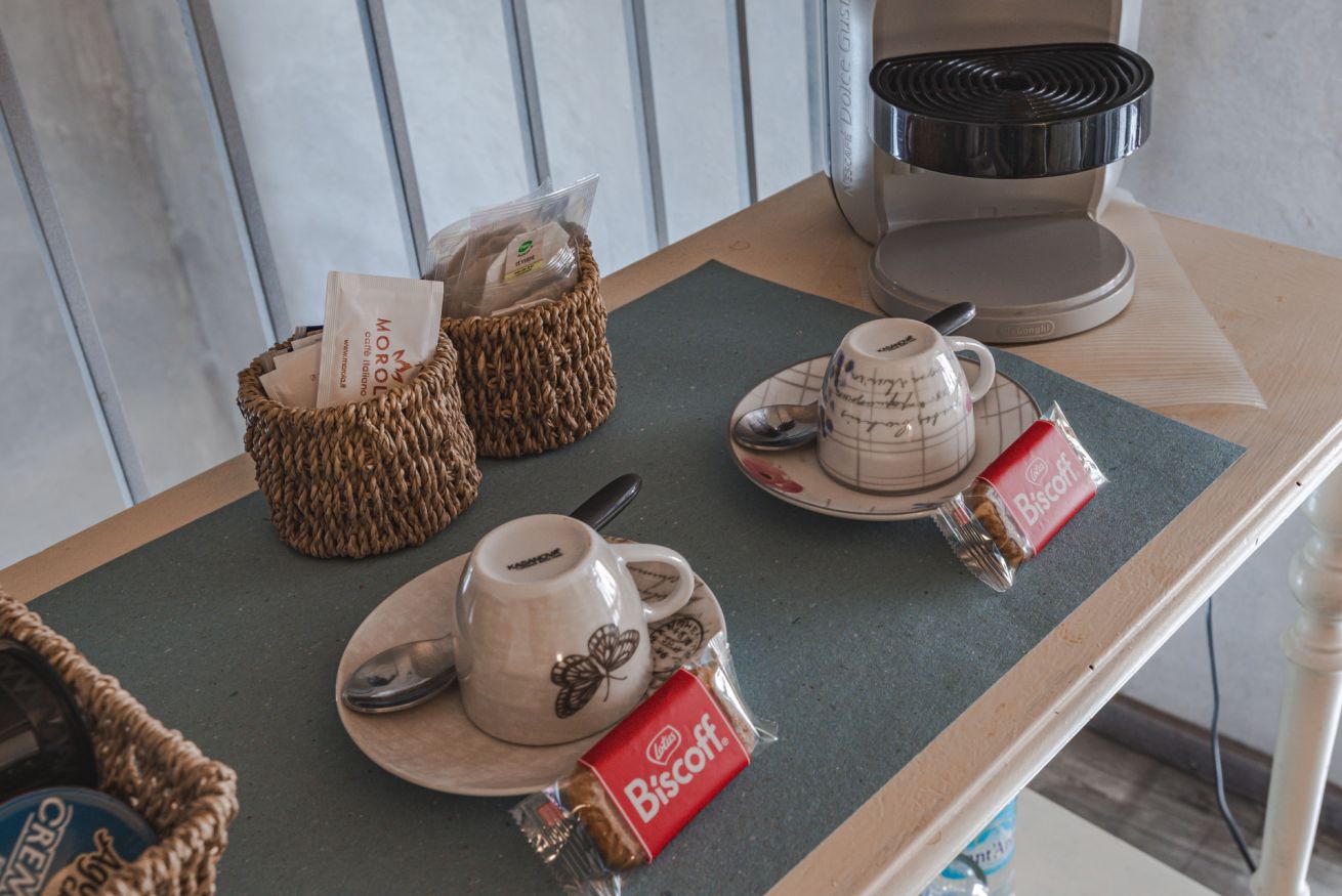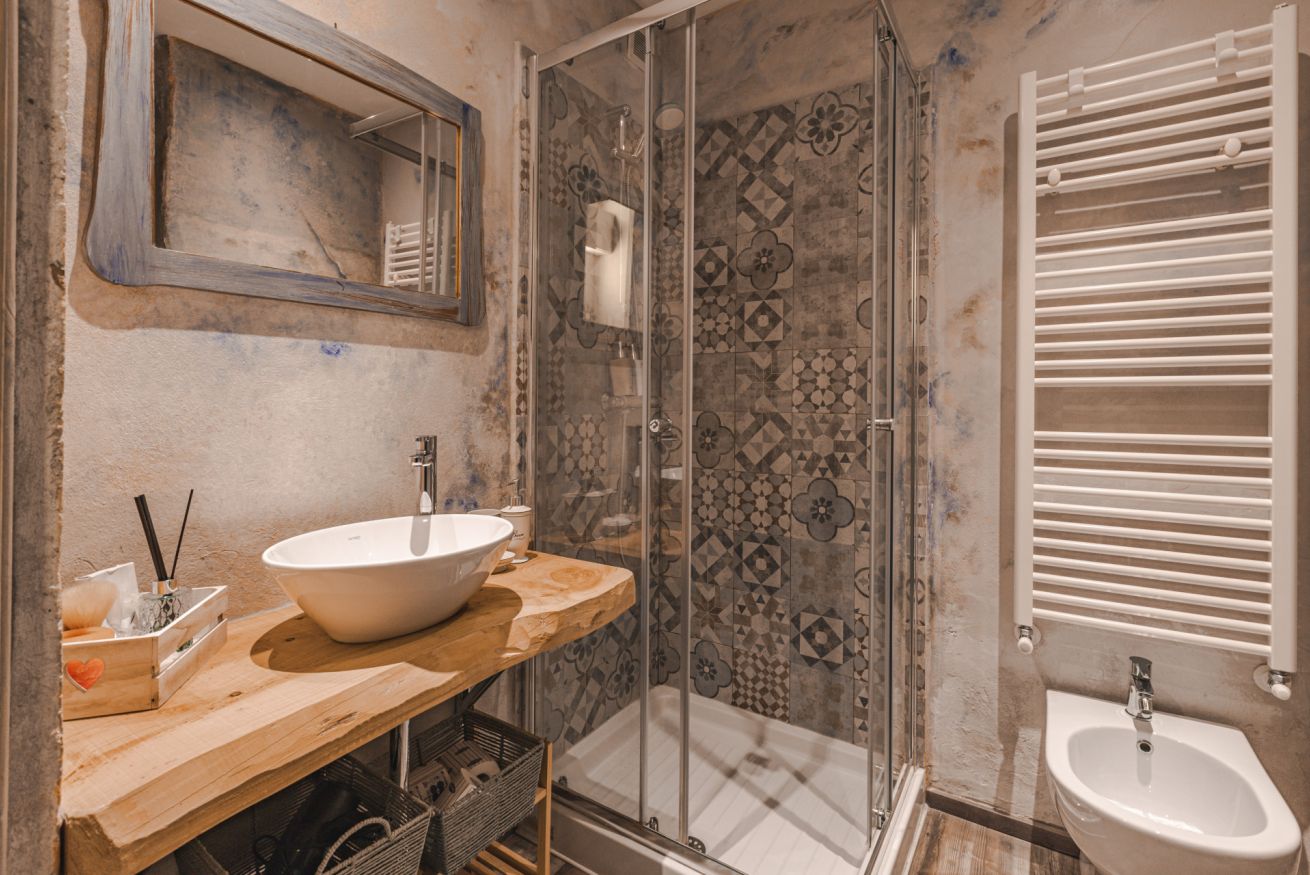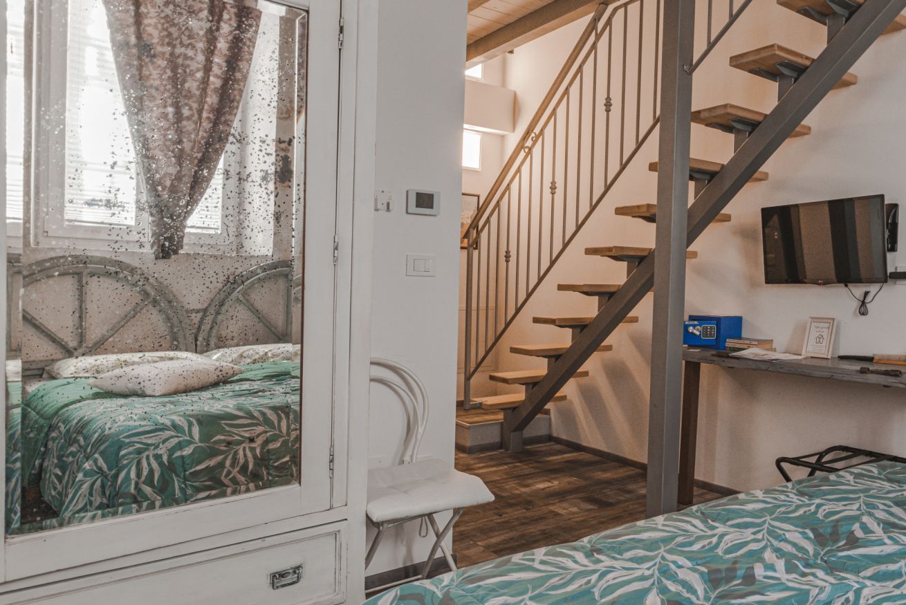 Camera tripla con letto matrimoniale e letto singolo su soppalco. Bagno privato.